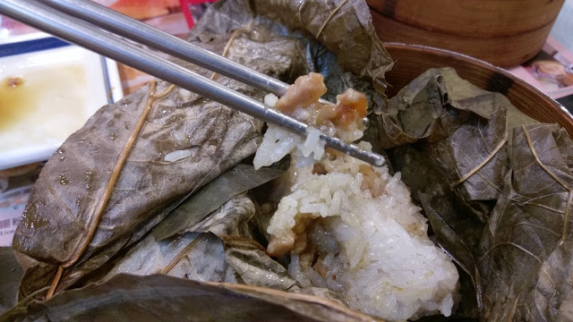 吃起來就是蒸的糯米飯+雞絲…..(雞肉真的有點少) 不過有著淡淡的荷葉香氣吃起來還滿特別的