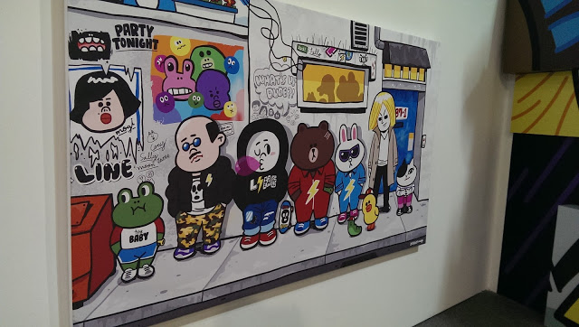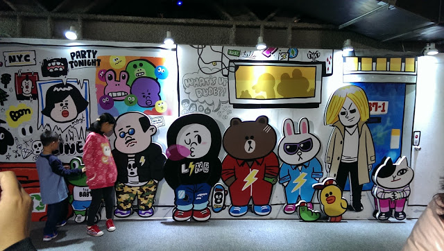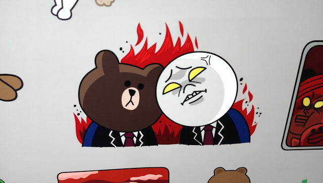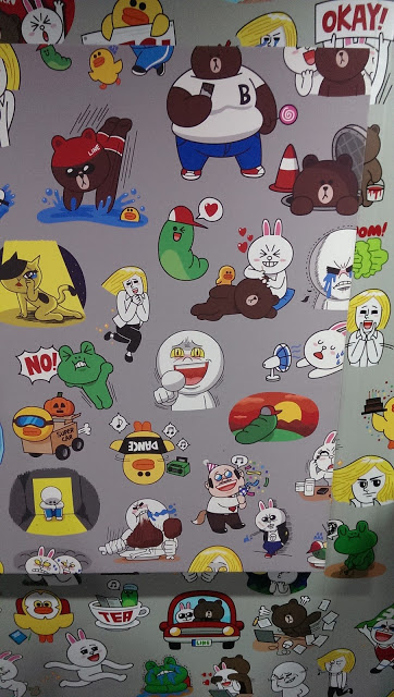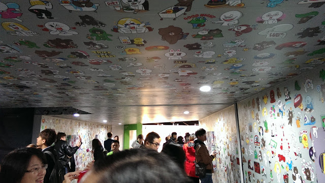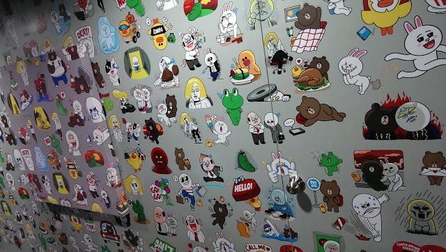 這個走到的上下左右牆壁滿滿都是使用LINE通訊系統傳送會用到的貼圖圖案