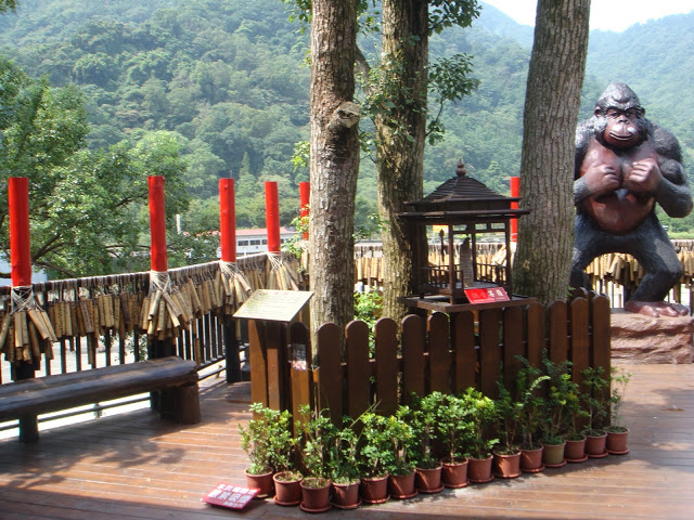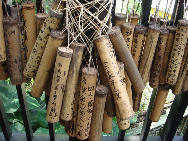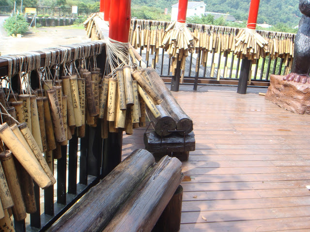 這廣場的觀音像旁邊綁了很多遊客的祈願竹
